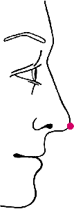 | Ce point est situé exactement à la pointe du nez. ATTENTION : la stimulation de ce point peut provoquer des vomissements. Si vous effectuez ce traitement sur un patient, mettez-vous de côté sinon gare... |