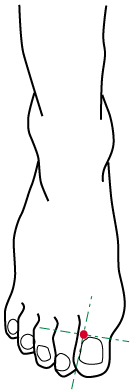 droit. Du côté des autres orteils du pied, Au point de rencontre des axes formés par la base de l'ongle et son côté. Mais comme un dessin vaut mieux qu'un long discour, regardons le schéma ci-contre. |