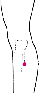 intérieur de la jambe. Il faut repérer le tibias, près du genou, en descendant le long, sur le bord arrière, il y a un angle formé par cet os, il suffit alors de mesurer trois doigts en dessous, c'est là. |