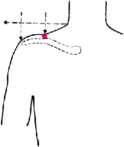| Le second point est situé sur l'épaule. Vous mesurez la distance entre la base du cou et l'extrémité de l'épaule et vous prenez le milieu. Le point se situe exactement à cet endroit. |
