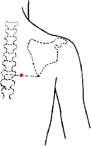 dorsale. Pour repérer la septième dorsale, vous pouvez utiliser la méthode de repérage des vertèbre utilisée pour le point de l'eczéma, ou bien vous pouvez utiliser la méthode suivante : La septième dorsale se trouve sur une ligne rejoingnant les pointes des deux homoplates (Cf. figure ci-contre). |