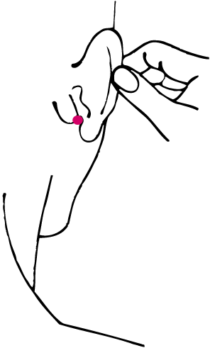 | Ce point est très facile à trouver. Il est situé en arrière du pavillon de l'oreille, à la pointe de l'os situé à ce niveau : l'os mastoïde Pour repérer précisément ce point, tirer le pavillon de l'oreille vers l'avant et appuyez sur la pointe de l'os. |